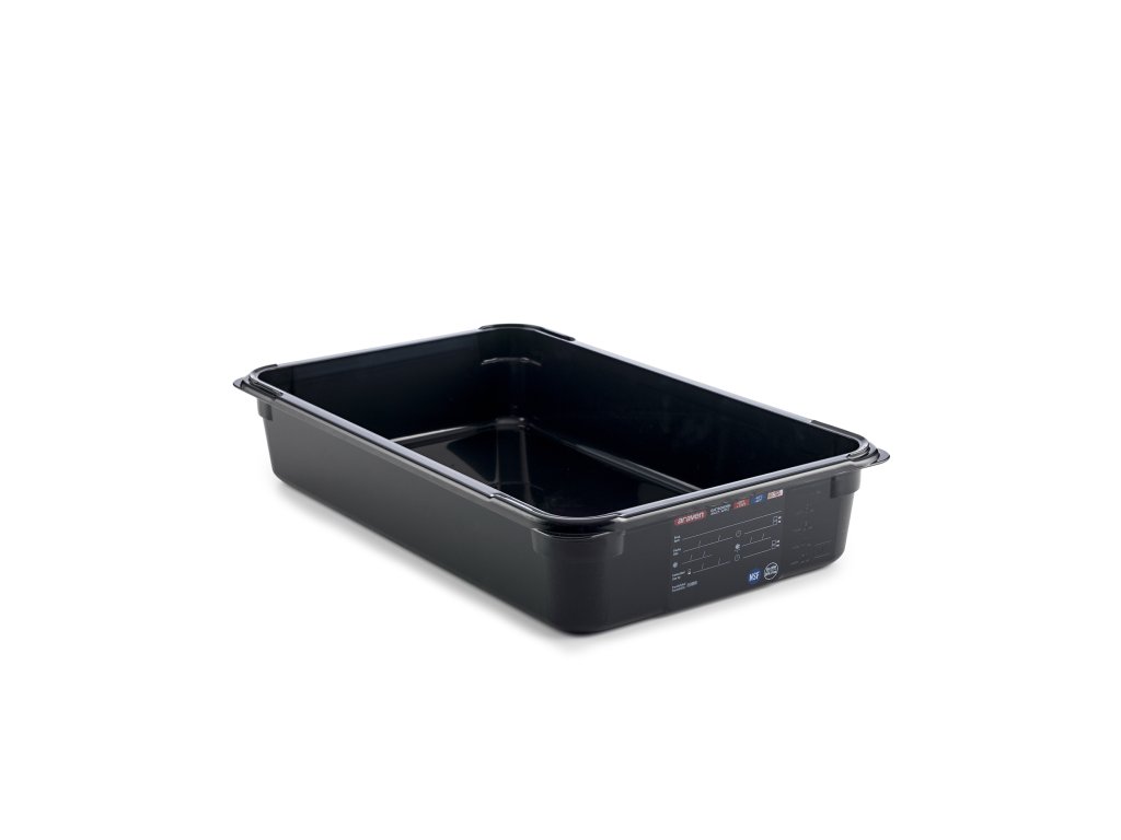 Řada ABS GN (BPA-FREE) + štítek IML pro vystavení potravin na chladících pultech a pro správné skladování v chladných komorách. Po provozní stránce tyto kontejnery umožňují „zrcadlení“ manipulačních/studených pultů a skladovacích/chladicích skříní pro usnadnění přípravy, dávkování a servírování. Přizpůsobení nádoby druhu obsažené potraviny a výrobní nebo spotřební šarži. Nádoba bez víka je navržena se zaoblenými hranami pro snadné čištění, bez ostrých okrajů nebo prohlubní, kde by se mohly usazovat nečistoty. Nádoby mají dvojité vstřikované víko s pryžovým těsněním zaručují maximální ochranu skladovaných potravin i ve velkých GNDoplňkové parametry