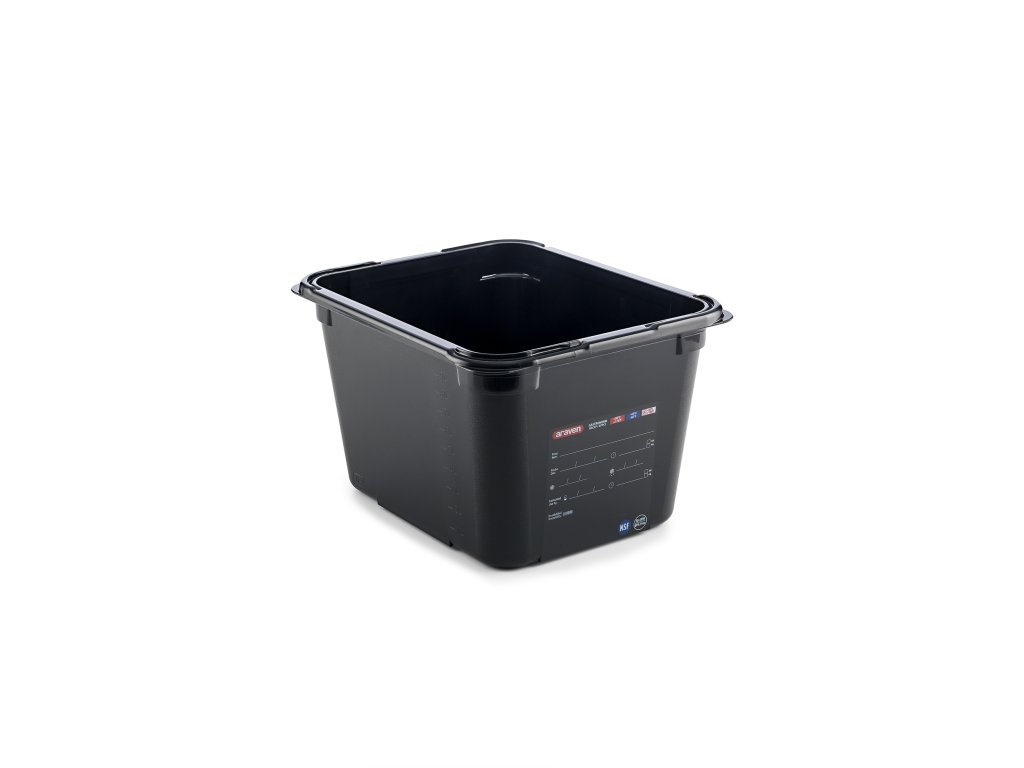 Řada ABS GN (BPA-FREE) + štítek IML pro vystavení potravin na chladících pultech a pro správné skladování v chladných komorách. Po provozní stránce tyto kontejnery umožňují „zrcadlení“ manipulačních/studených pultů a skladovacích/chladicích skříní pro usnadnění přípravy, dávkování a servírování. Přizpůsobení nádoby druhu obsažené potraviny a výrobní nebo spotřební šarži. Nádoba bez víka je navržena se zaoblenými hranami pro snadné čištění, bez ostrých okrajů nebo prohlubní, kde by se mohly usazovat nečistoty. Nádoby mají dvojité vstřikované víko s pryžovým těsněním zaručují maximální ochranu skladovaných potravin i ve velkých GNDoplňkové parametry