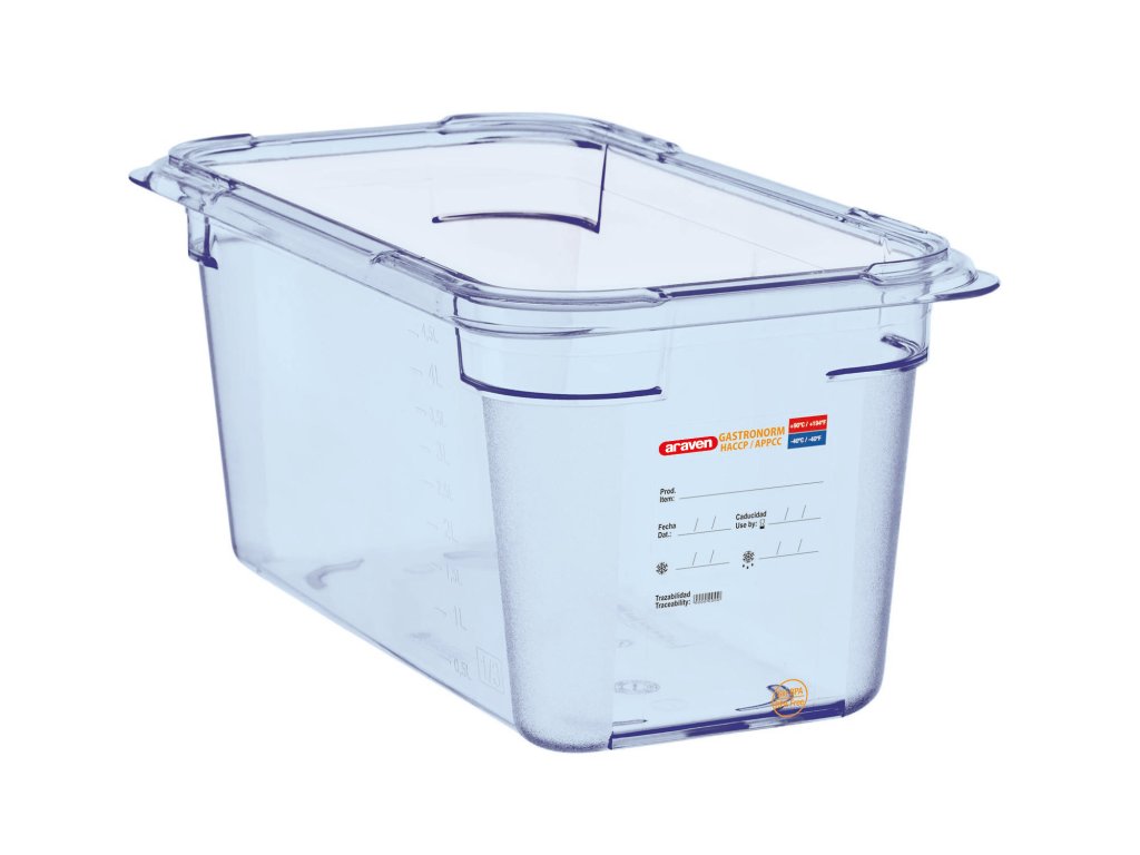 GN nádoby BPA FREE jsou koncipovány a navrženy pro cateringové profesionály. Nádoby velikosti GN mají integrované štítky sledovatelnosti, pomáhají dodržovat zdravotní a hygienické předpisy, jsou zcela transparentní pro rychlou identifikaci potravin, které obsahují. Jejich dvojitě vstřikované víko s pryžovým těsněním zajišťuje maximální ochranu potravin i ve velkých nádobách.Doplňkové parametry