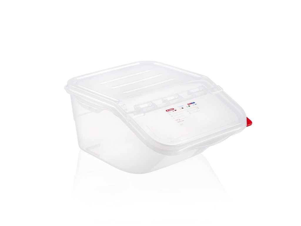 Zásobníky na přísady jsou navrženy pro dokonalé skladování, optimální uchování potravin s maximální hygienou a nejpřísnější kontrolou surovin. Zásobníky na přísady jsou ideální pro uchovávání potravin s velmi nízkou vlhkostí (sušiny, ořechy, těstoviny, rýže...), protože je lze zavřít, takže obsah je chráněn, aniž by musel být vzduchotěsný, čímž se zabrání vniknutí vlhkosti a znehodnocení potravin. obsah. Pak už jen stačí najít vhodné místo pro uložení nádoby, což by mělo být suché a dobře větrané místo, daleko od zdrojů tepla a vlhkosti, izolované od velmi vlhkého prostředí. Větší kontrola zásob: Zásobníky na přísady GN jsou navrženy se systémem FIFO (first in-first out) s víkem pro plnění a druhým pro vyjímání potravin. doporučení HACCP. Usnadňuje správné otáčení jídla. Oddělené plnění a vyjímání v GN 1/1 pro usnadnění kontroly obsahu.Doplňkové parametry