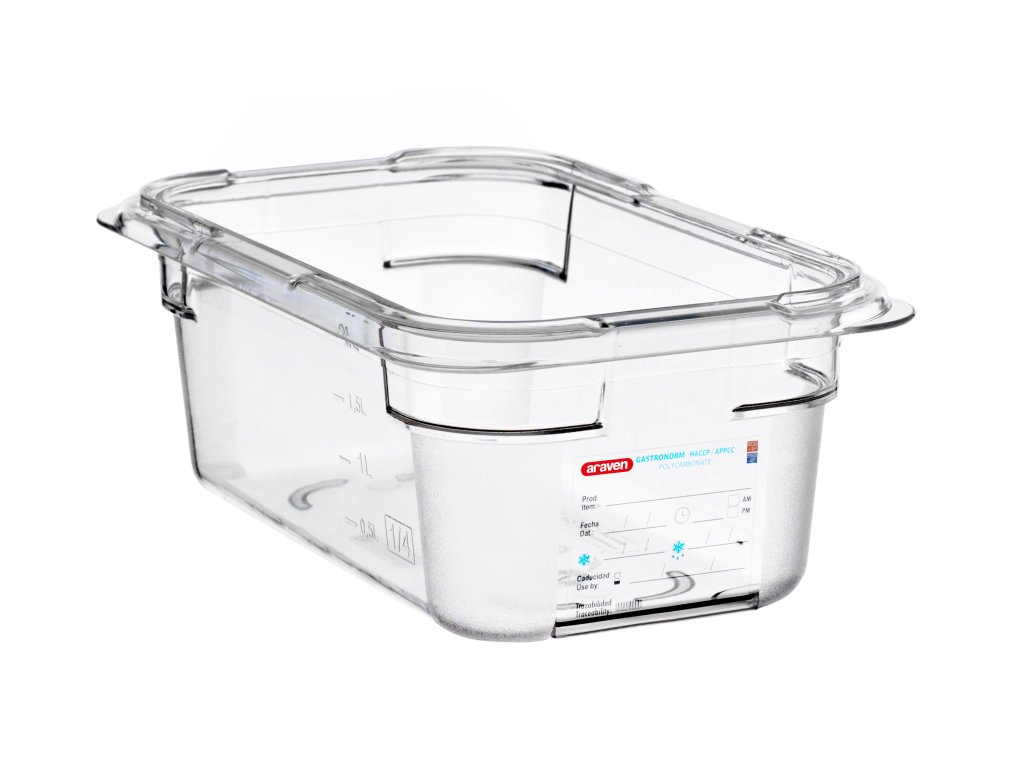 Polykarbonátové nádoby s víkem jsou koncipovány a navrženy pro cateringové profesionály. Nádoby velikosti GN mají integrované štítky sledovatelnosti, pomáhají dodržovat zdravotní a hygienické předpisy, jsou zcela transparentní pro rychlou identifikaci potravin, které obsahují. Jejich dvojitě vstřikované víko s pryžovým těsněním zajišťuje maximální ochranu potravin i ve velkých nádobách.Doplňkové parametry