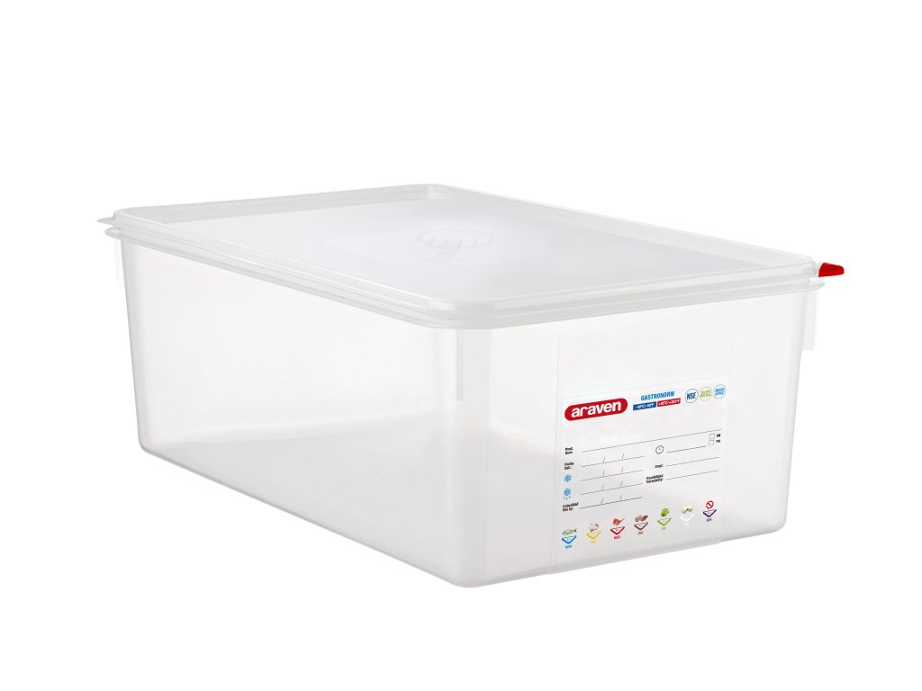 Polypropylenové vzduchotěsné nádoby navržené pro gastronomické profesionály. Vzduchotěsná nádoba je k dispozici ve velikostech GN. Vzduchotěsná nádoba na potraviny má trvalý štítek podle nařízení o sledovatelnosti Reg. (CE) n.852/2004 Reg(CE) n.178/2002 S ARAVEN je snadné psát na etiketu s fixem s netoxickým inkoustem ARAVEN a etiketa zůstane jako nová i po opakovaném mytíDoplňkové parametry